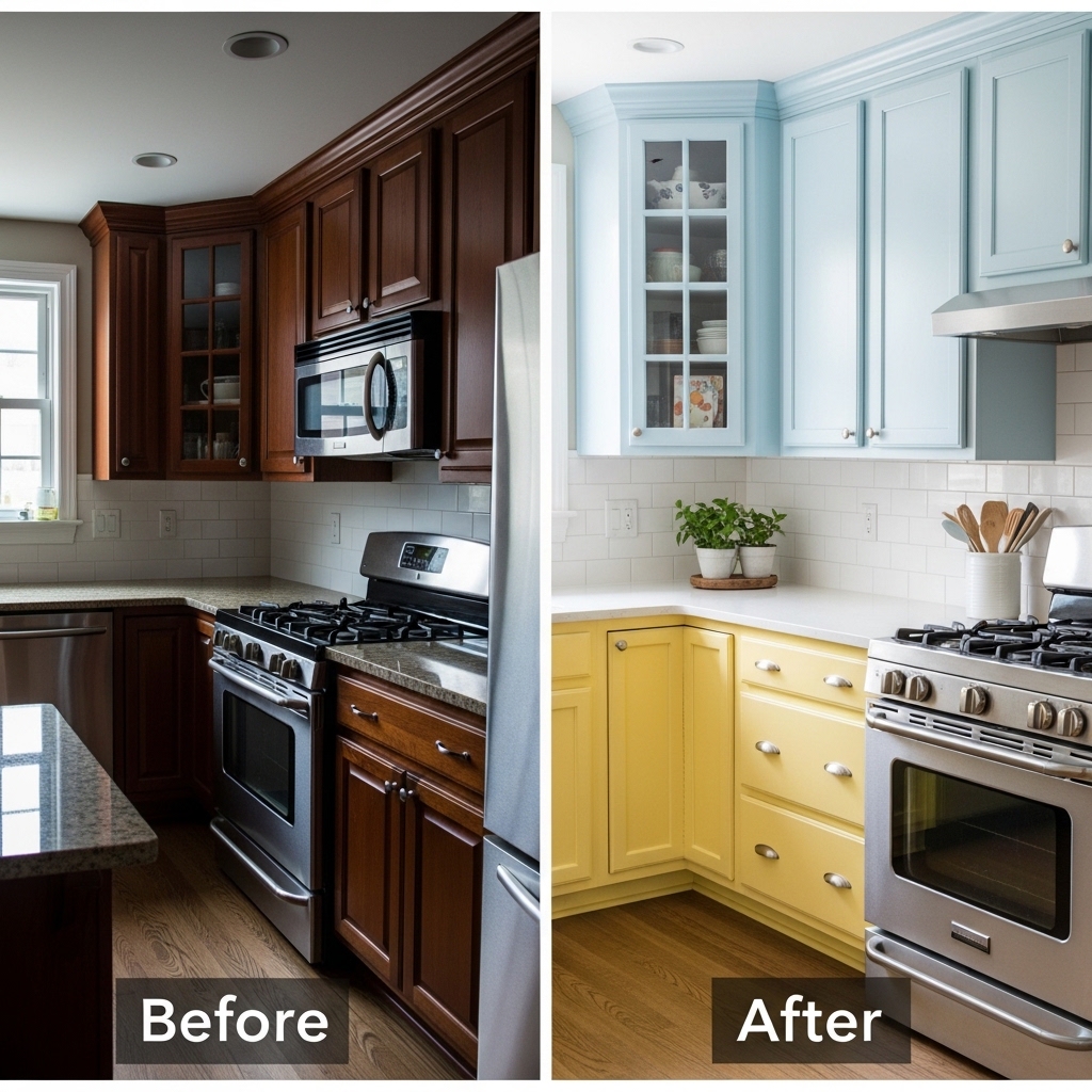 From colour selection to final coating, we bring new life to outdated cabinets, helping homeowners achieve a modern, stylish kitchen at a fraction of the cost of replacements.